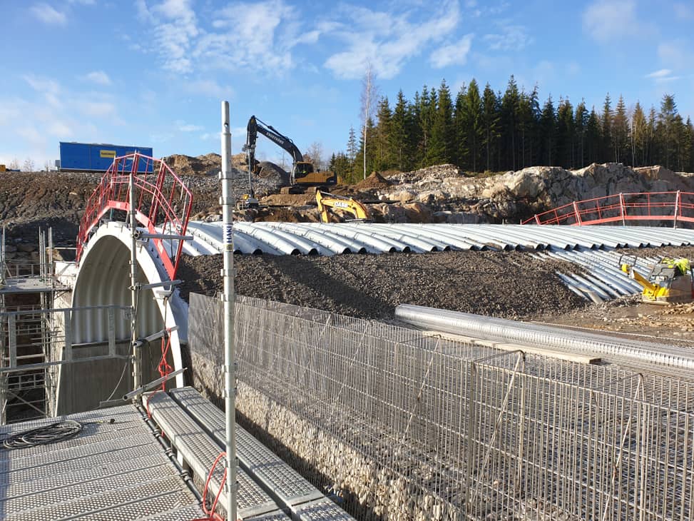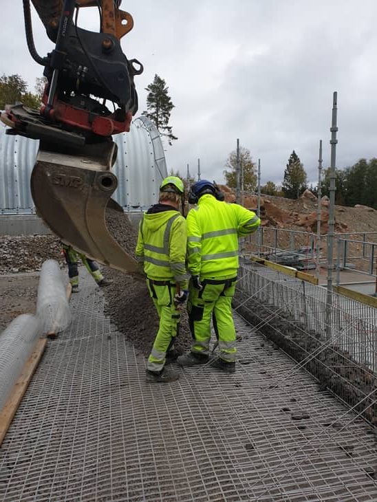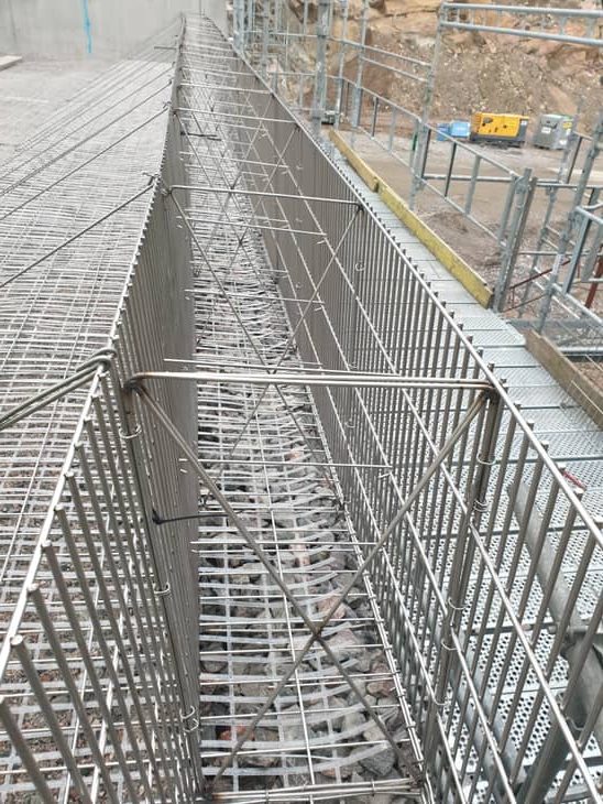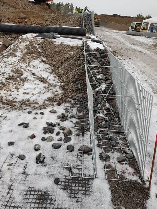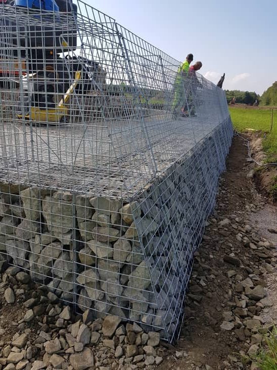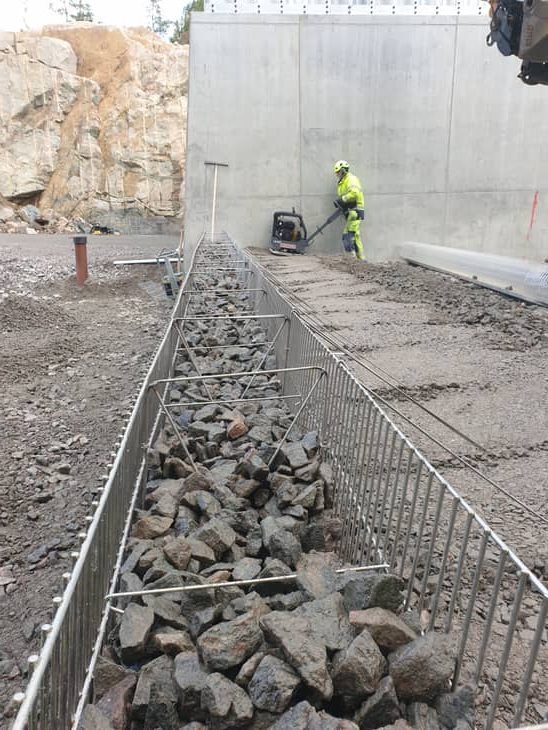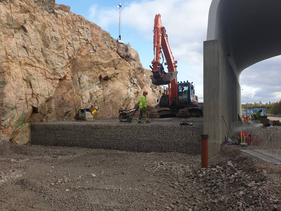 Etu- ja takaverkon väli täytetään kivellä ja takaverkon osa maa-aineksella kerros kerrallaan.