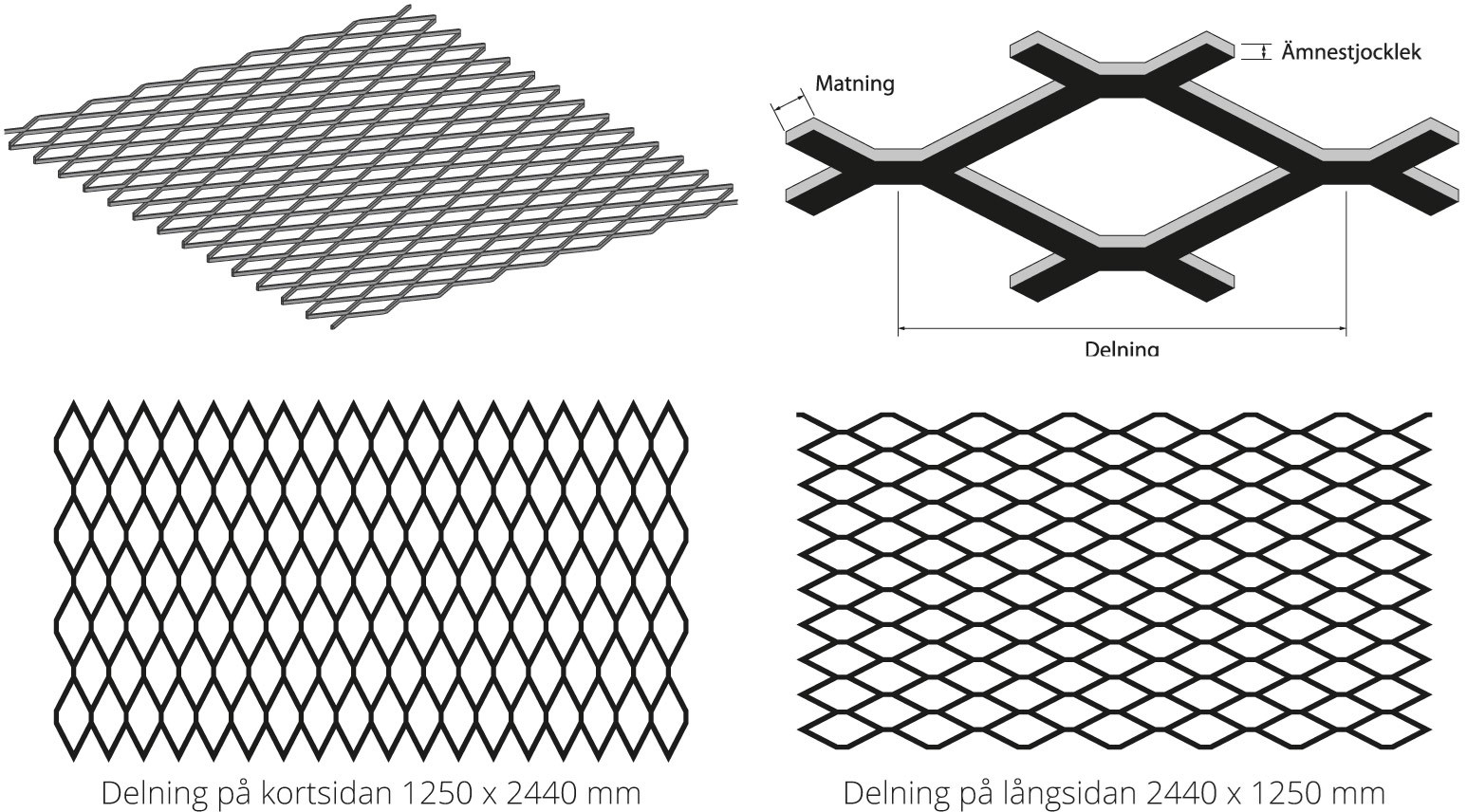 Förutom standard sträckmetall som vi lagerhåller kan vi tillverka andra storlekar med snabb och flexibel leveranstid.