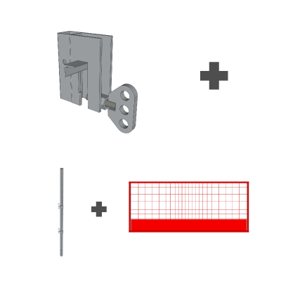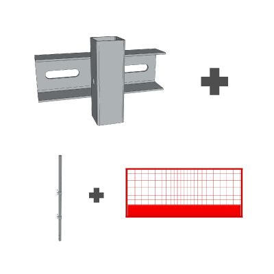 Suojakaidetolpat ovat modulaarisia. Käytössänne on aina samanlainen suojakaide ja tolppa verkkopidikkeellä. Valitsette vain, millä tolppajalalla haluatte kiinnittää tolpan alustaan.
